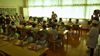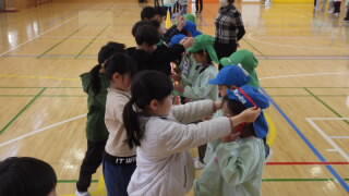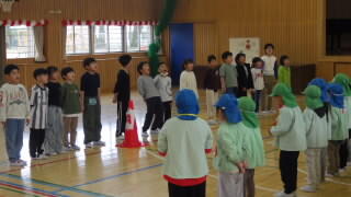 今日は今週の火曜日に引き続き,幼保小の連携事業の一環で山王認定こども園の年長さんが来校しました。1・2年生と共に体育館で自己紹介し合い,体を動かし,手作りメダルや歌のプレゼントを渡しました。その後ランチルームで2年生が配膳を手伝ってくれて給食となりました。1・2年生ともに年長さんに対してお兄さんお姉さんとして立派に振舞い,とても微笑ましい光景でした。(年長さんの写真は一部ボカシを入れたものもあります)