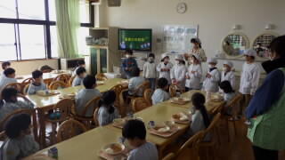 今日は徳次郎保育園の園児(年長)が来校して,1・2年生と交流活動を行いました。体育館で運動をしたり,児童から園児へ手作りのメダルや歌のプレゼントを渡したり楽しい時間を過ごした後,ランチルームで小学校の給食体験を行いました。園児の皆さんにとって小学校が,わくわくする楽しみな場所になってくれているといいですね。26日には山王認定こども園の園児が来校予定です。