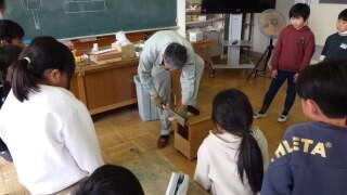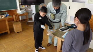 また,3年生は図工の時間にPTA会長の池田さんを講師に招いて,のこぎりの出前授業を行いました。刃物を使うということで危険も伴いますが,それだけにきちんと丁寧に扱う必要があるため,児童は真剣に話を聞き,慎重に取り組むことができました。DIYに興味をもつ児童がでてくるかもしれませんね。
