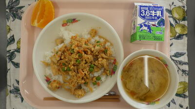3月2日の献立は,親子丼,牛乳,まろやかみそ汁,デコポンでした。
