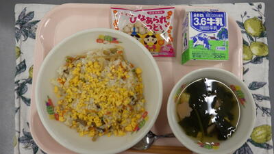 3月3日の献立は,五目ちらしずし,牛乳,豆腐入りすまし汁,ひなあられでした。