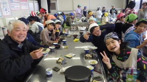 感謝の言葉を述べたり、感謝の歌を歌ったりした後、池田さんにも入っていただいて、調理をしました。