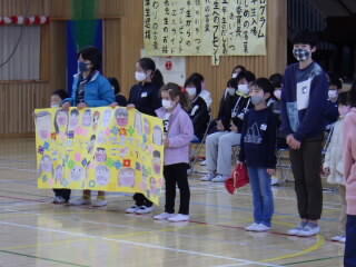 6年生の代表から、5年生の代表への校旗の引継ぎもありました。校旗と一緒に、最高学年としての自覚と責任、富屋小の伝統も引き継がれました。5年生には、今日から学校を代表する顔としてがんばってほしいと思います。