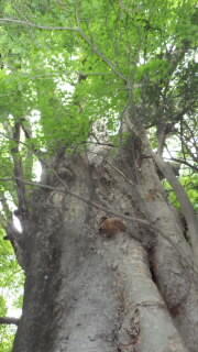 次に、上町地区に向かい、岡本家屋敷内にあるケヤキを見ました。幹の太さは約8mで、大人7人でやっと抱え込めるほどの巨木です。