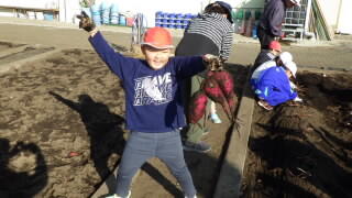 また,第2弾の芋ほりを本日行いました。やはり大きなサツマイモが地中に潜んでおり,掘り出すだけでも一苦労でした。でもがんばって掘り出したときの表情は,なんともいえず良い表情でした。