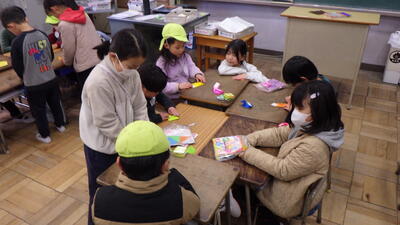 2年生からは、かわいい1年生が、自分たちが作ったおもちゃを楽しんでくれたり、上手にできて素直に喜んでいたりする姿を見て、「がんばってよかったな!」「またやりたいな!」と達成感を味わっていました。