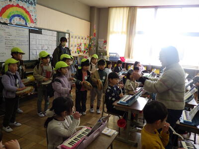 3時間目は、1年生の国語・生活・音楽の授業を見たり、一緒に活動しました。