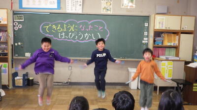 その中から1つ選んで、各クラスで発表会を行いました。漢字、計算、お手伝い、鍵盤ハーモニカ、なわとびなど、グループごとに発表の練習をし、最後まで一生懸命取り組みました。お家の方が後ろで応援してくれている!と思いながら、堂々と発表することができました。