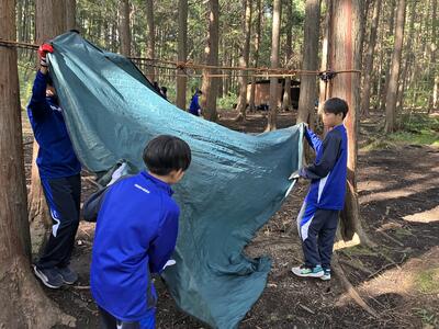 10月28日(火)から30日(木)の2泊3日、うつのみや平成記念子どもの森公園にて、冒険活動教室を実施しました。文化祭・合唱コンクールの練習に並行して、実行委員12名で準備してきました。寒さやカメムシと戦ったテントでの寝泊まりはかなり思い出に残った様子です。今回のキーワードは「成長」ということでしたが、仲間との宿泊学習の中で絆を深めるとともに、普段できない自然体験の中で大きく成長したように感じます。
