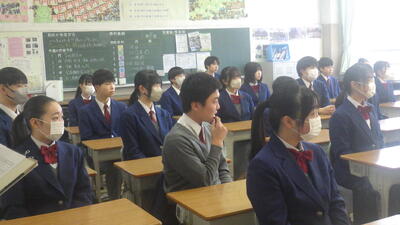 12月23日(火)、24日(水)の2日間、日本の伝統的な楽器である箏・尺八の演奏を聴くことにより、我国の伝統文化について興味・関心を深め、伝統音楽に親しもうとする心情を育てることを目的として、ふれあい文化教室を開催しました。1年生がクラスごとに行い、生徒は、講師の先生方から直接お話を聞いたり、箏爪をつけて、実際に箏にふれて音を鳴らし、貴重な時間を過ごすことができました。ありがとうございました。