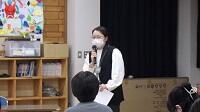初めに,稲作ボランティアの齋藤芳彦様からサギやトンビ等,豊郷地区で見られる野鳥の話をしていただきました。写真を提示しながら分かり易く説明していただき,子供たちも興味津々で聞き入っていました。