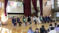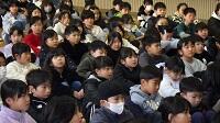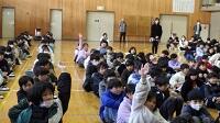 講話の内容は,30年前と今の通学路を比較したり,豊北ならでは「イナゴとり集会」を紹介していただいたりするなど,興味深い話が続き,子供たちは真剣に聴き入っていました。
