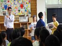 初めに,稲作ボランティアの齋藤芳彦様からサギやトンビ等,豊郷地区で見られる野鳥の話をしていただきました。写真を提示しながら分かり易く説明していただき,子供たちも興味津々で聞き入っていました。