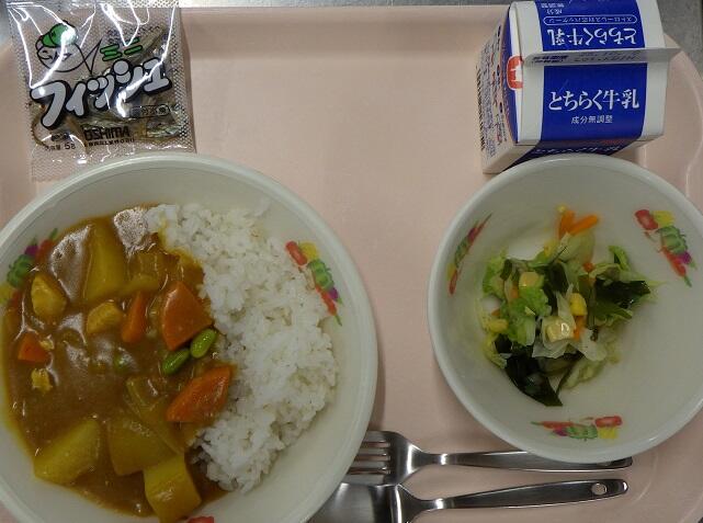 チキンカレー,海藻サラダ,ミニフィッシュ