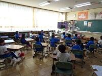 小中一貫教育・地域学校園の取組として,例年6年生が進学中学校を訪問して,授業や部活動の様子について学びます。しかしながら,依然として新型コロナウイルス感染症が収束が見込めないため,昨年度に続いて中学校が作成したDVDを視聴することになりました。2日間に分けて学級ごとに見ました。