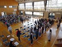 換気をする,話をしない,可能な限り間隔を空ける,短時間で行うなどの対策をとり,全児童を体育館に集めて修了式を行いました。始業式は校庭で行ったため,これだけの児童が体育館で一堂に会し,集会するのは直近3年間で初めてとなります。