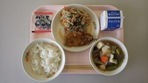 | 3月17日(水) 明日の卒業式を前に,給食はお祝いのメニューにしました。デザートは春らしいイチゴ味のケーキです。6年生のみなさん,お味はいかがでしたか。 <献立>お赤飯,すまし汁,ほうれん草ののりいっぱいサラダ,ヒレカツ,お祝いケーキ | ||