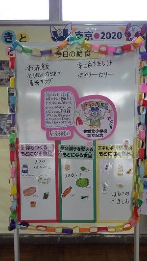 | 1月25日(月)給食 毎年1月24日から30日まで全国学校給食週間になっています。本校では今週5日間を設定し,教職員出身地のメニュー提供,図書室に給食関係コーナーの設置,児童給食委員会による校内放送などを行います。 本日は,給食委員会5,6年児童が,食事のマナー等について伝えるTV放送です。 <食事中のマナー> ①食事のあいさつをきちんと言おう②姿勢をよくして食べよう③正しく食器を置いて食べよう④正しい箸の持ち方で食べよう⑤片付けを上手にしよう <献立:新潟県> ・ごはん,のっぺい汁,鶏肉のカレー揚げ,煮菜,牛乳 | ||