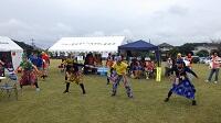 また,野外では,チンドン屋パフォーマンスやアフリカンダンス、バルーンア-ト,大抽選会等,企画が盛沢山で,皆,楽しく参加していました。模擬店や地元の新鮮野菜も好評でした。