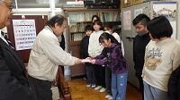 贈呈式では,田嶋支部長より「たくさん読んで力を付けていってください。」との言葉と共に目録が代表児童の髙槻さんに手渡され,子供たちからも「楽しそうな本をありがとうございます。」「表紙の絵が気に入りました。早く読みたいです。」等,満面の笑みで思い思い感謝の気持ちを伝えました。