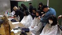 続いて,「モデルカット体験」です。児童6名と教員1名が、スタッフの方々に即興でカットしてもらいました。カット前は不安そうな子供たちが、20分後にはキラキラ輝いた表情で登場。皆から拍手喝采を浴び、貴重な体験となりました。