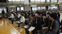 始めの言葉に続き,手作りのメダルと心を込めて書いたメッセージカ-ドを6年生へプレゼント。