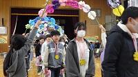 再び後輩たちの「ありがとう さようなら」の歌声をBGMに花のア-チをくぐり会場を後にする6年生。その後姿は,頼もしく且つ誇らしく見えました。