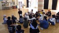 始めに、皆でホワイトボードの地図を見ながら、1学期に隊員一人一人が貼ったシ-ルを確認。地域の地図には、445個のシ-ルが貼ってあり、445回のあいさつを交わしたことが分かりました。また、グル-プでそれぞれの活動の様子を披露し合い讃え合いました。