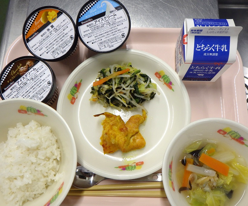 タンドリーチキン,磯辺和え,白菜とあさりのスープ,セレクトアイス