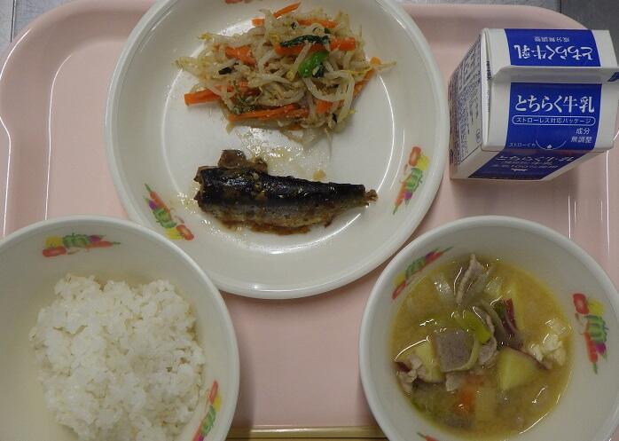 いわしのおかか煮,ごま和え,さつまいも豚汁