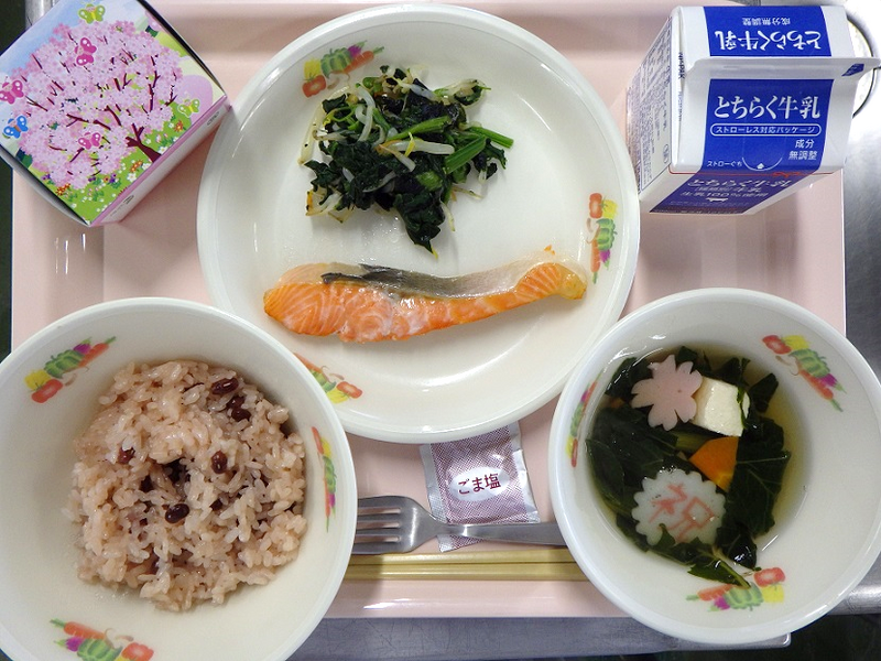 3/16(月) 今日の給食 投稿日時 : 03/16 豊郷北小学校管理者 卒業祝い献立 お赤飯,塩鮭,ほうれん草の海苔いっぱいサラダ,花束すまし汁,お祝いケーキ {{options.likeCount}} {{options.likeCount}} 0 コメント