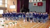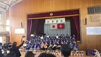時は流れ、伝統の豊北小の旗を5年生に託し,巣立ちゆく6年生。