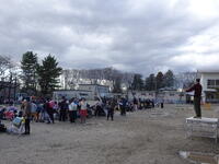 雨が止み,校庭の水たまりが少なくなったので,予定されていた一斉下校を校庭で行いました。あと3週間で6年生が卒業のため,今日の下校から,5年生や一番上の学年に班長が交代します。6年生は卒業まで班のうしろについて,下級生の見守りを行ってもらいます。新班長は明日から,しっかりと班を連れてきて欲しいと思います。6年生,今まで班長としてありがとうございました。