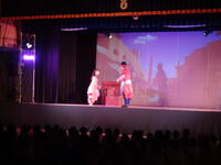 10/7に,低学年・高学年に分かれて,芸術鑑賞教室を体育館で行いました。今年は,劇団ポプラのみなさまによる『アラジン』の劇の鑑賞です。始まるとすぐに舞台に引き込まれ,演者のすばらしい演技や映像を使っての場面展開の臨場感に驚きながら,笑いあり,ドキドキありの楽しい時間となりました。