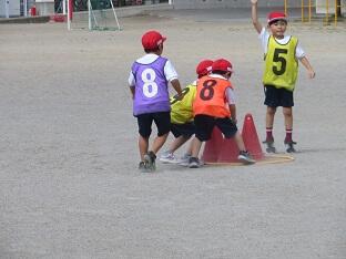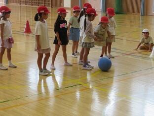 1年生の体育の授業です。「表現リズム遊び」として「〇〇ランドのものがたりをつくって,さつえいしよう」がテーマです。子供たちは,ウォーミングアップやリズム遊びでたくさん体を動かします。走って跳んで,4つ足で走ったり,後ろ向きで走ったり,スキップしたり・・。「あーつかれたあ」と準備運動でたくさん体を動かしました。全員で運動したり,グループごとに運動したりして,楽しみながら夢中になって体を動かしていました。