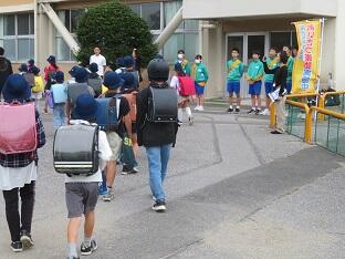 きょうの下校は,警察の方,見守り隊の方,防犯協会の方に見守られながらの下校となりました。地域の方の見守りのおかげで,子供たちは安全に登下校できます。いつもありがとうございます。