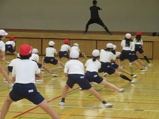 5年生の体育の時間です。いよいよ運動会の練習が始まりました。ダンスのふりをつけを覚えています。5,6年生は一つ一つの動きも大きいので大変だと思いますが,みんなで精いっぱい踊る楽しさを味わってほしいと思います。