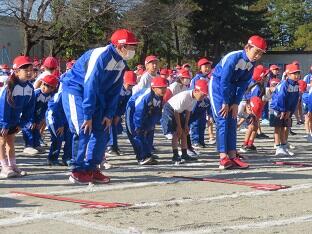 午後2時を過ぎて,日も陰り吹く風も冷たく感じられます。そのような中,校庭から「ガンバレー!」「ハイ!ハイ!」「〇〇さん,こっち!」などと元気な子供たちの声が響いてきました。4年生の体育の授業「フラッグフットボール」です。このクラスでは,互いの陣地のエンドラインに駆け込んで点数を競い合うゲームのようです。腰に挟んだフラッグを取られると,その場から後方にいるチームメイトにパスをしなくてはなりません。ボールを持っていない人の動きにも工夫が必要ですね。たくさんの子供たちから声が出ています。応援にも熱が入ります。寒さに負けない元気な子供たちです。
