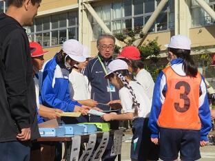 朝夕は風の冷たさを感じますが,日中は陽射しがたっぷり注ぎ暖かさを感じます。そんな中,5年生の子供たちが体育の授業で「リレー」の練習に取り組んでいました。グループで何回かバトンの受け渡しの練習をした後,トラックを利用してタイムを計ります。友達のバトンパスの様子を見て,よくなったところや改善点を指摘したりするなど,グループでの学習を深めています。「〇〇さんとのコミュニケーションはよくなってきたと思うな」「ハイ!って声を掛けるタイミングが難しいね」など,練習の様子を振り返っていました。自分たちのバトンパスだけでなく,チームとしての技能の向上を目指す雰囲気が感じられました。次回は最後の学習の時間になるようですが,どのチームも,そして個々人も,「できた!」という充実感を味わってほしいですね。
