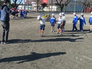 1年生と2年生の楽しそうな声が校庭から聞こえます。2年生の生活科には「1年生とあそぼう」という単元がありますが,きょうは,1組の子供たち同士が一緒に遊ぶことになりました。へび鬼やボール転がしゲームで交流しました。初めは,ちょっぴり緊張気味の1年生でしたが,次第に打ち解けてきて,互いのおしゃべりも多くなって楽しく遊べるようになりました。2年生も一生懸命に1年生に説明したり,やり方を教えてあげたり,ボールを譲ってあげたりしています。頼もしくなりました。これからも少しずつ関わりが増えていくことになるでしょう。交流を増やしながら互いの学校生活がより楽しくなっていくといいですね。