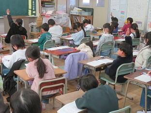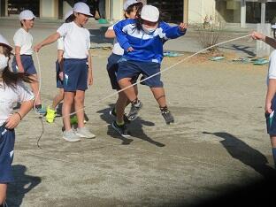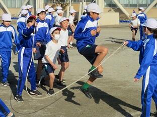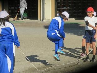 きょうは気温が低くとても寒い1日となりました。「さむーい!」「きょうが一番寒いよー」と話しながら4年生の子供たちが校庭に出ていきます。寒い日でも,いつものように縄跳びのコーナーには子供たちがいっぱい集まっています。「先生!見てて!」「〇〇跳びができるようになったよ!」などと,何人かの子供たちが話しかけてきます。上級生が下級生に跳び方を教えたり,一緒に縄跳びで遊んだりする姿も見られました。