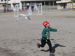 1年生の昔遊びです。最初は上手に歩けなかった子も,コツを覚えて歩けるようになると,だんだん楽しくなってきたようです。「先生,見て!」と楽しそうに歩いて見せてくれました。「速く歩けるよ!」とスピードを上げてやって見せてくれる子もいます。1年生の昔遊びでは,このほかに竹とんぼやけん玉などにも挑戦しているようです。
