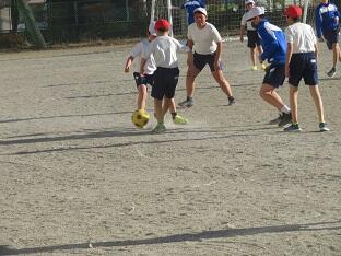 5年生の体育です。穏やかな日になりました。風もなく気温も徐々に上がってきて外で活動しやすい日になりました。半袖姿の児童も見られます。このクラスではサッカーをしていました。ゲームに参加する児童数を制限して,ボールに触れる子供を増やしていますが,同じチームの子供たちが周囲から声を掛け,応援したりアドバイスを送ったりしています。元気に活動する子供たちの姿がたくさん見られます。