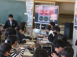 1年生が「そうじのしかた」についての出前授業に臨みました。業者の方を講師に迎えて「掃除をする目的」について学んだあと,「ほうき」と「ちりとり」の使い方,雑巾の絞り方について体験を通して学びました。
