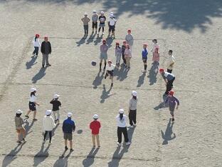 きょうも青空が広がっています。空気は冷たいですが,穏やかな天気で外での活動も無理なく進められます。この時間も昨日に続いて,1年生のあるクラスがたこあげをしています。青空に,白地のビニール凧がよく映えます。子供たちは笑顔で走っています。少しずつ糸の長さも伸ばしているので,「上がった,上がった」と見上げて喜んでいました。糸が絡まらないように気を付けながら上手にたこあげができました。