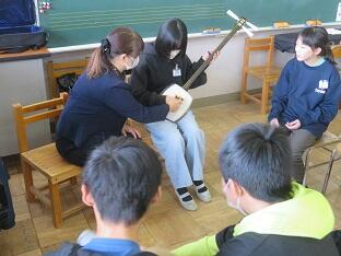 3年生の音楽の時間です。リズムを感じながら歌ったり鑑賞したりしています。子供たちは,音楽を聴くと自然に手拍子をうったり体を揺らしたりします。からだ全体で曲のリズムを感じながら音楽を楽しんでいる様子が伝わります。一人一人がリズムを感じてタンブリンを叩きますが,周囲の子供たちも曲の流れの中で体でリズムを感じているようです。子供たちの動きを見ていると,歌や演奏の技能だけではなく,「感じる」という活動が,特に小学校の下学年においては,成長とともに,音楽に親しめる感覚を築く上で大切なことと感じます。