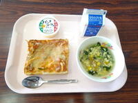今日の給食は,今日から始まる冬季オリンピックにちなみ,「オリンピックこんだて イタリア」でした。ミラノコルティナ2026冬季オリンピックを行うイタリアをイメージした献立です。イタリアンスープとパンナコッタふうデザート,そしてピザが出ました。ピザには,トマトやチーズ,バシルなどが入っていました。美味しくいただきました。