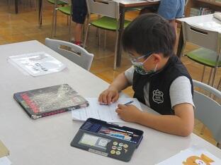 「電動糸のこぎり」を使って板を切り取っています。板を動かしながら,曲線に沿って切り進めます。子供たちは,落ち着いて丁寧に切り進めているようです。切り取った板は,紙やすりをかけて形を整えます。中には,難しいデザインに挑戦しようとする子もいます。「変わった形にしたかったので・・・」と意欲的です。最後には色を塗って切り取った板を組み合わせていくようですが,きっと個性的な作品が並ぶことでしょう。完成が楽しみです。