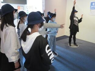 肩に手をかけてつながった状態で,前,後ろ,右,左・・・,と繰り返しジャンプします。一見,簡単そうにも見えますが,よく見ると,ちょっとでもタイミングがずれると体が振られてうまく合わせることができません。子供たちは,繰り返し声を掛け合いながら練習しています。並び方を変えたり,後ろからも声を掛けたりと次第に子供たちから工夫し始めました。ちょっとした隙間の時間にも「練習しよう!」「よし,やるよ!」と,自主的に練習し始めます。友達といっしょに達成感を味わえること,ちょっと頑張ればできるようになること,そういったところが子供たちの意欲を掻き立てるのかもしれません。練習中も笑顔が絶えませんでした。