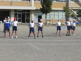 運動会に向けて最後の全体練習が行われました。開閉会式の確認とラジオ体操,応援の練習をしました。6年生の子供たちを中心に気持ちを引き締めて練習に臨みました。「聴く」「見る」「動く」「声を出す」といった一つ一つの行動をメリハリをつけて行います。この全体練習では,集団の一員として自分がどのように行動すべきかを学習しているのです。動作だけではなく,考える力も養われています。